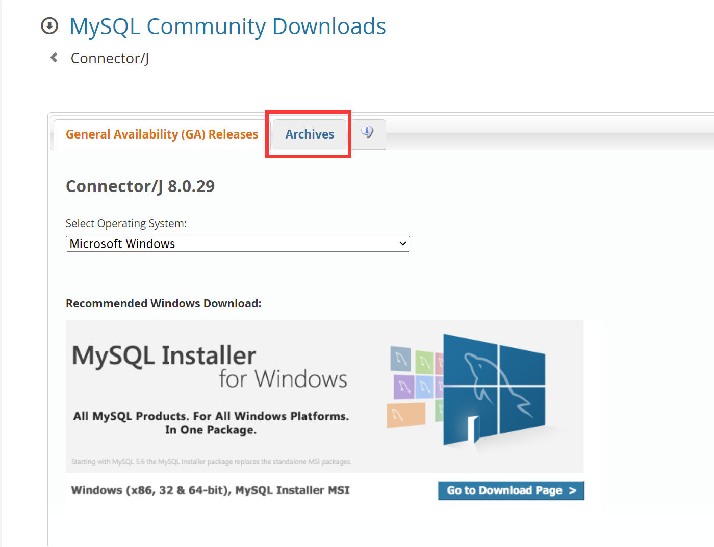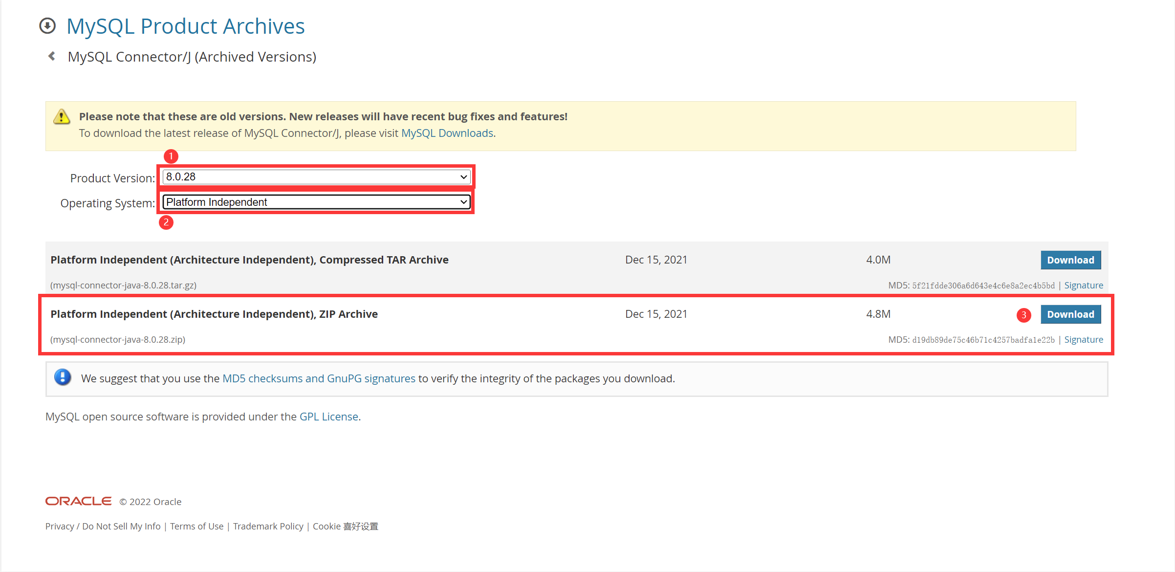 这里附上一键直达的链接:MySQL :: Download MySQL Connector/J (Archived Versions)