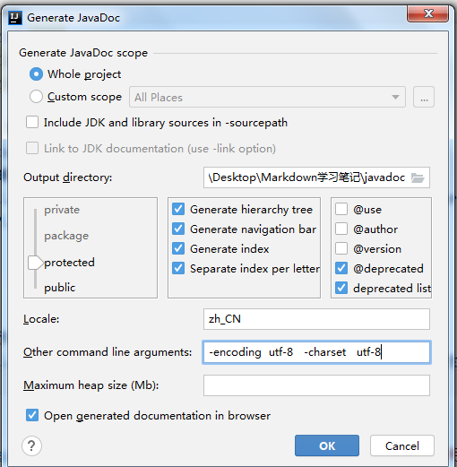 1、点击 Tools-> Generate JavaDoc,打开生成 javadoc 文档的配置