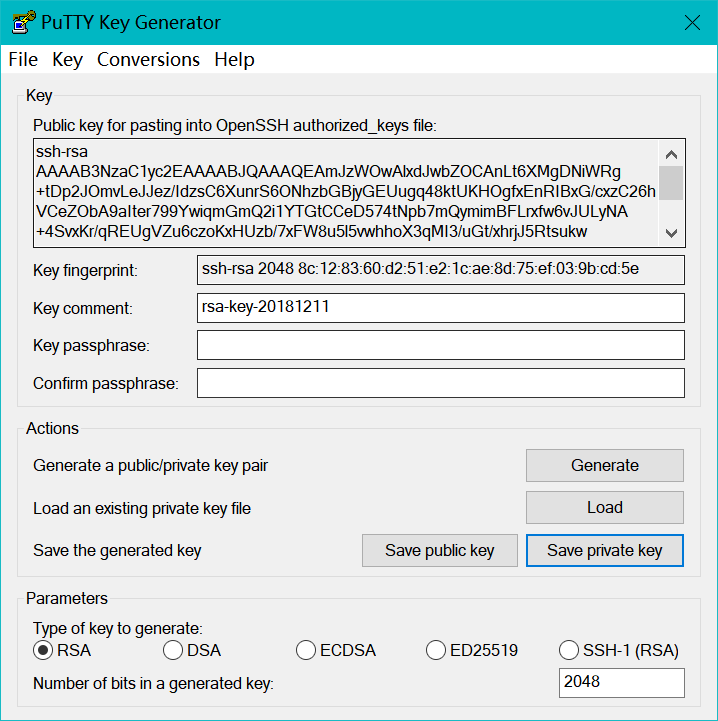 生成SSH密钥对,使用puttygen。