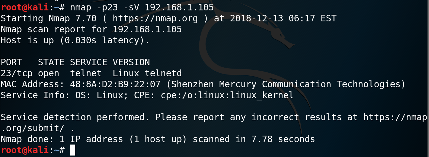 使用nmap获取telnet版本信息,或者使用metasploit获取对应版本信息。