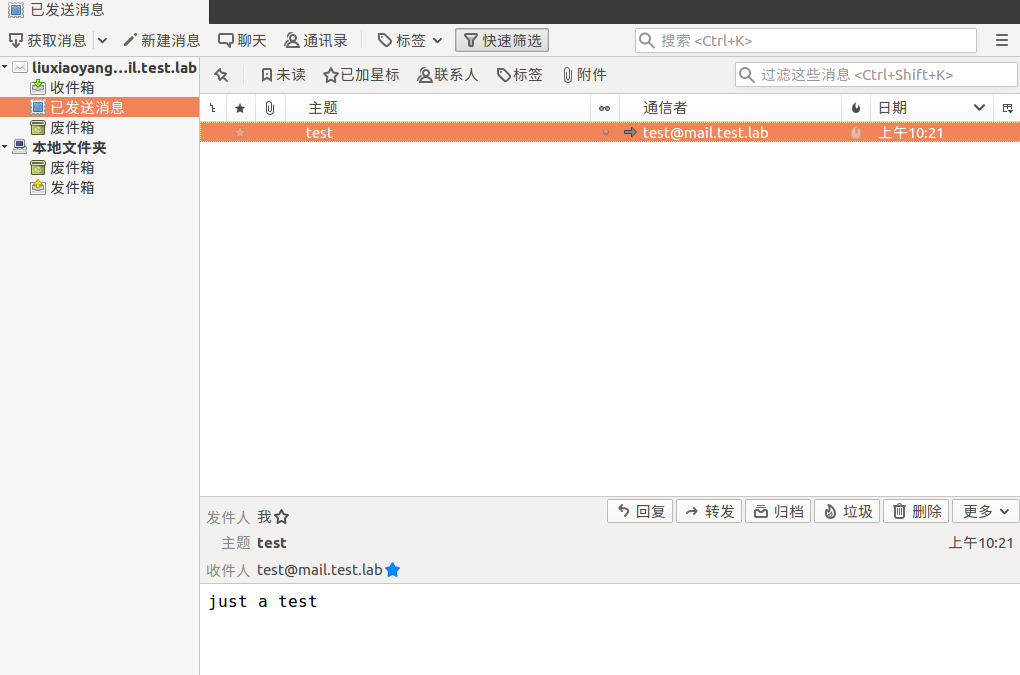 利用Linux下 thunderbird软件进行邮件的发送。