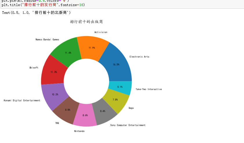 253 plt.title("排行前十的发行商",fontsize=16)