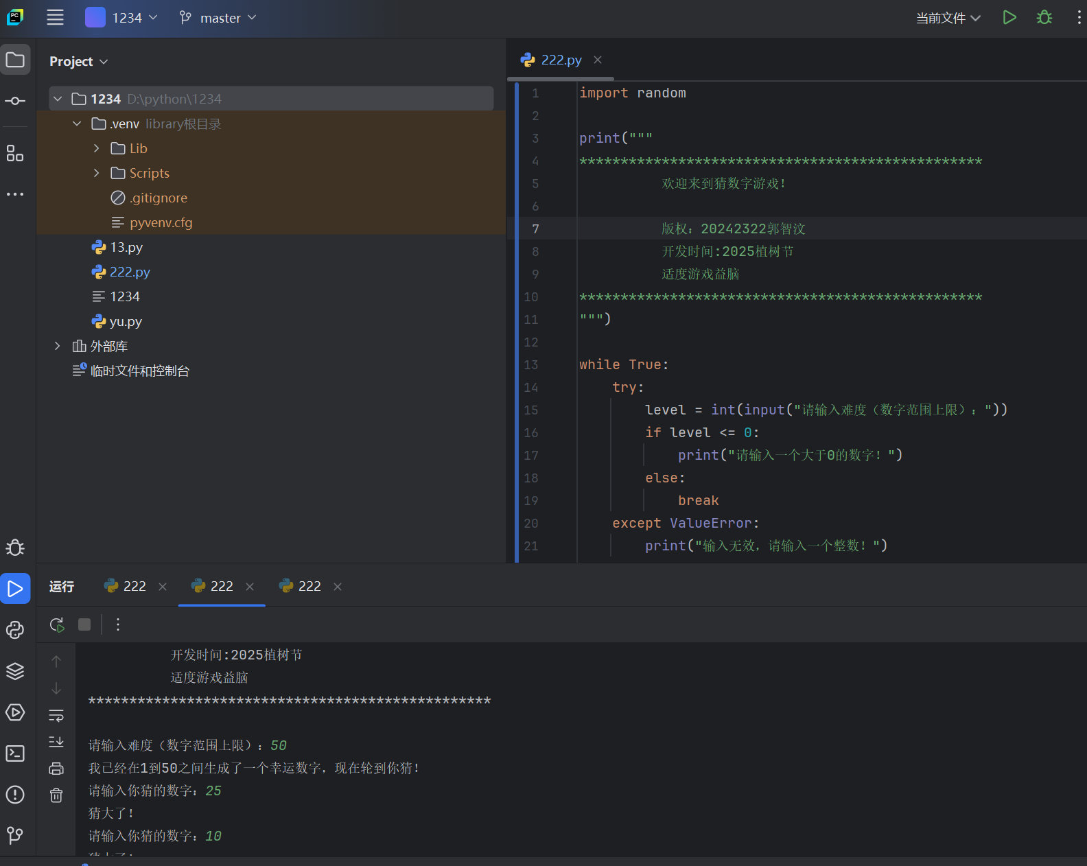 print(f"我已经在1到{level}之间生成了一个幸运数字,现在轮到你猜!")
