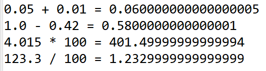 得数与真实得数有误差。因为使用double类型的数值进行计算,转换成二进制码时会有误差,其结果是不精确的。