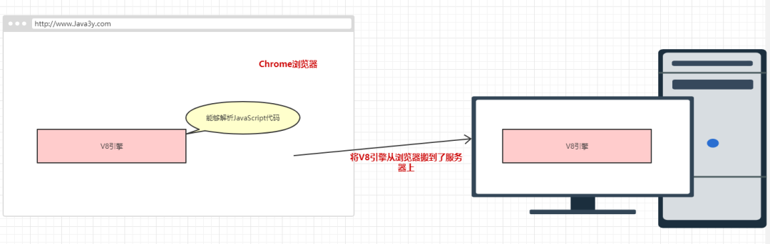 后来,有牛逼的人把V8引擎搬到了服务端上,在V8引擎的基础上加了网络通信、IO、HTTP等服务端的函数。取了一个名字叫:Node.js