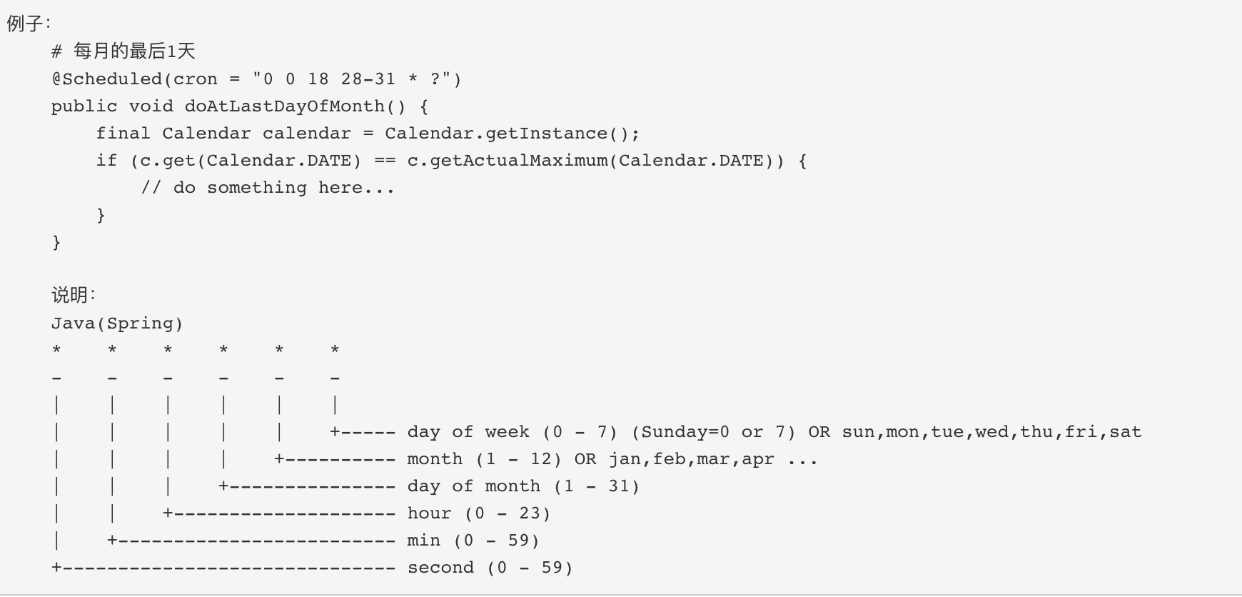 在方法上面加注解@scheduled(cron="<cron>表达式")