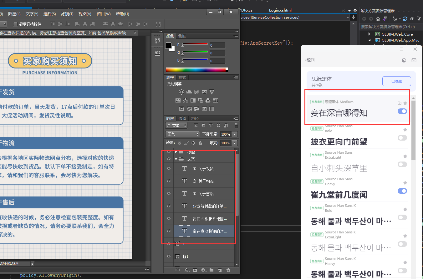 字体搜索出来后,点一下图层,点一下字体就可以了,我去,竟然这么简单,以前还傻傻的去下载字体。。。