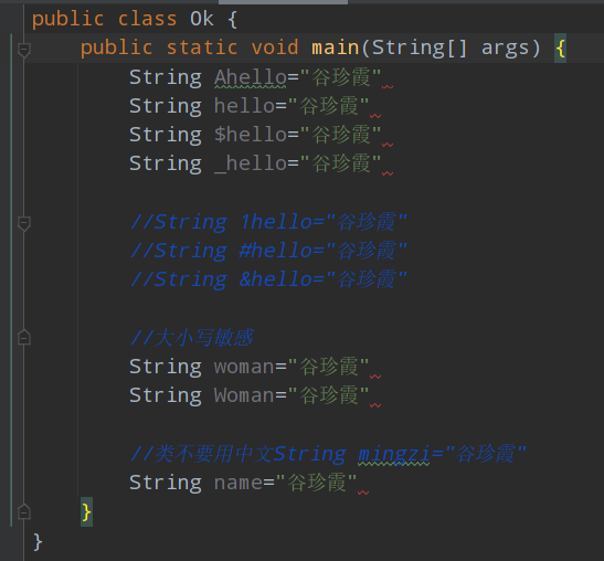 Java所有的组成部分都需要名字,类名,变量名以及方法名都被称为标识符