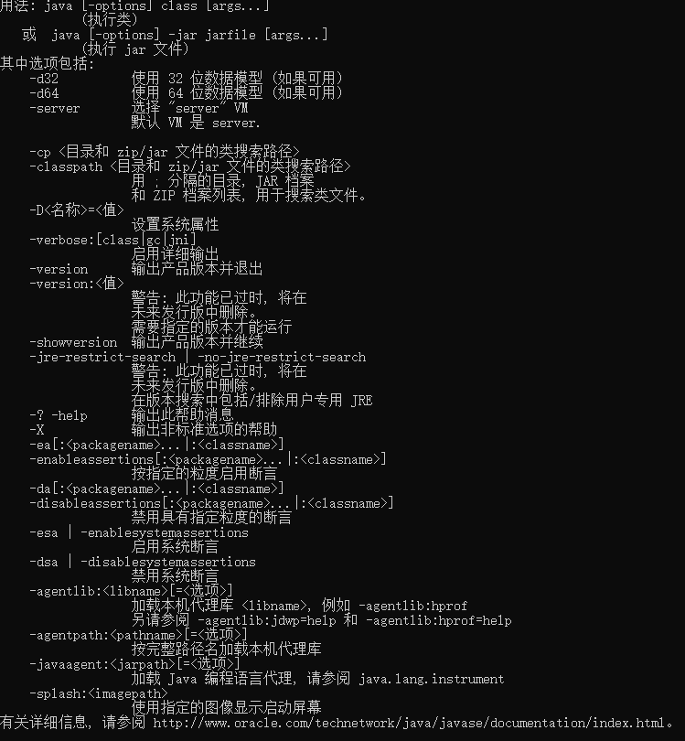 java下载完成后在指令窗口输入Java如果出现以下情况就是正确的.就可以开始环境配置了。