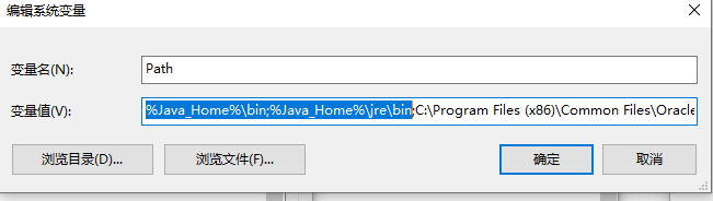 - 编辑:PATH,在原变量值的最后(前面也可以)加上";%JAVA_HOME%\bin;%JAVA_HOME%\jre\bin"。