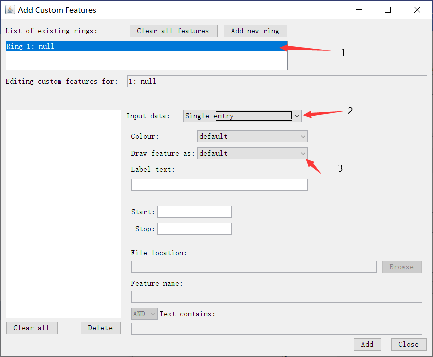 在1里面选择添加注释信息的圈,就是最外的空圈,在2里面选择注释文件的格式,table是表格形式,需要在excel中做3列,起始碱基,结束碱基,名字,保存为制表符间隔的txt文件