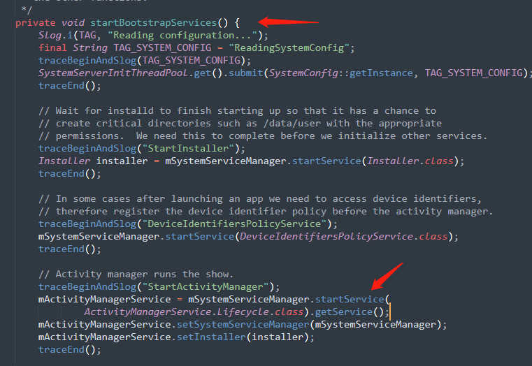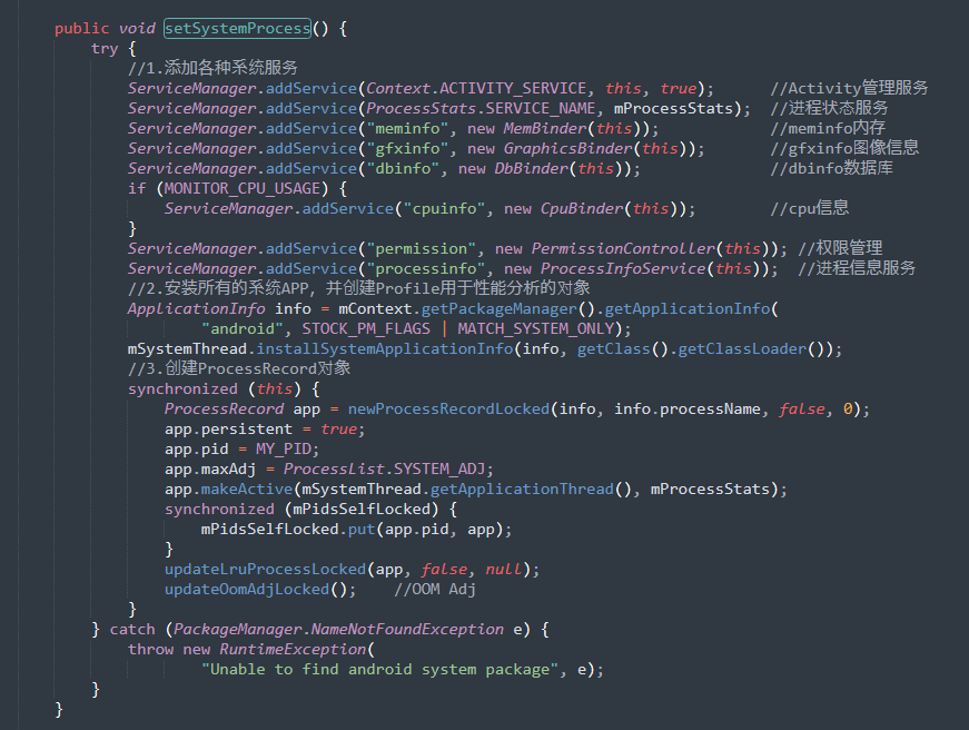 1>.添加到mServices集合中(收集所有的系统服务,AMS,WMS,PKMS这些,方便于拿到这些服务并与之通信)