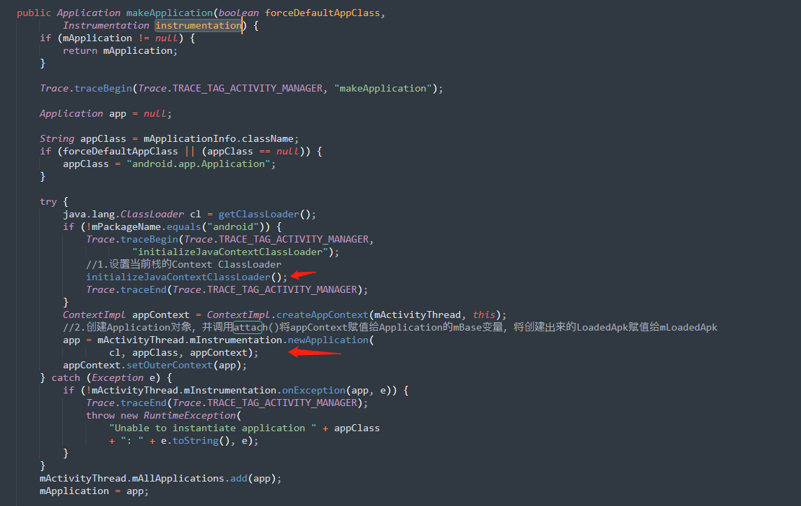 5>.通过调用Instrumentation的callApplicationOnCreate()调用Application的onCreate().