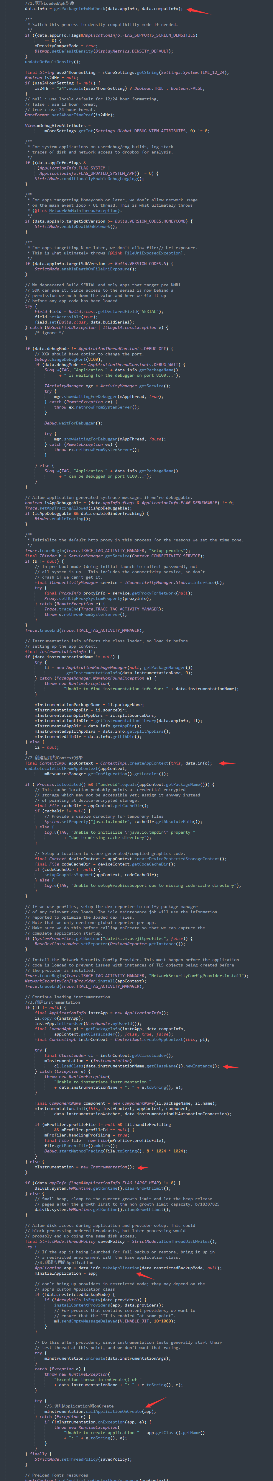 2>.通过调用sendMessage()发送Handler消息来调用handBindApplication()。跟到该方法。我们可以看App的Application的创建过程和执行。代码如下: