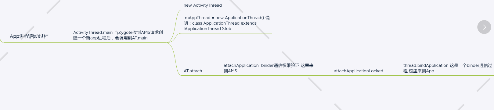 这里主要分析的是上图的第三步的过程。Zygote在收到请求以后,ActivityThread和AMS之间是如何协同工作的,或者说第三步主要做了一些什么。我已经整理成xmind文档,如下图所示: