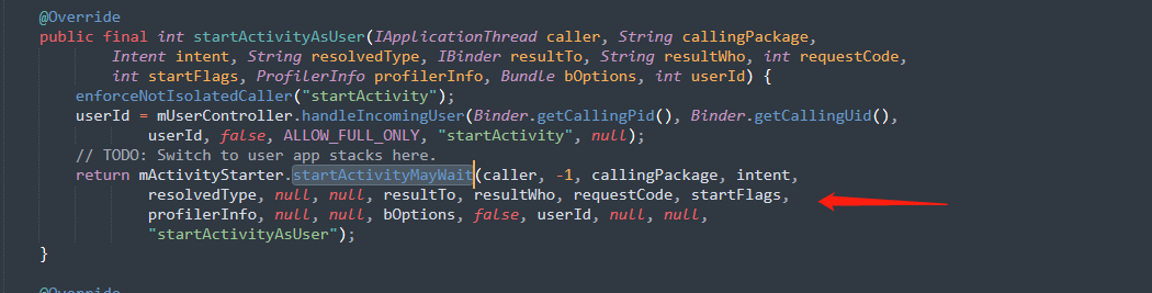 AMS的startActivityAsUser()会调用到ActivityStarter.startActivityMayWait(). 在AMS里面。其实Activity的启动是在ActivityStarter里面完成的。