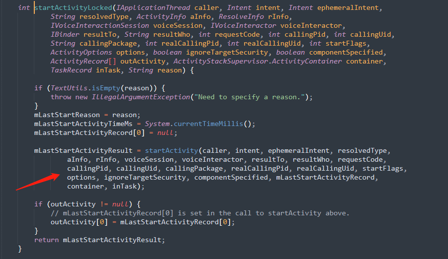 跟踪startActivityLocked()。我们发现它调用了startActivity(),代码如下: