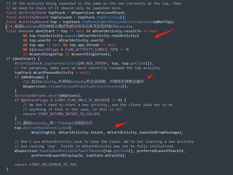 跟进startActivityUnchecked()里面,其实到这里才开始真正意义上的启动一个Activity.代码如下,启动一个Activity主要的做了三件事: