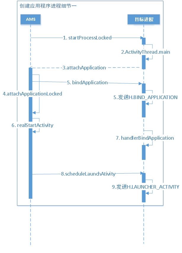 这里开始准备调用Zygote去创建新进程了,创建进程的流程,这里不在跟踪,有兴趣的可以自行了解。如果想看这一块的内容,请移步到Android 进程创建流程分析跟Android系统启动流程分析。这里不在做过多介绍。我们移步到进程创建之后的流程里。这里我们用时序图做一下简要交代,调用Activity最终会调用到scheduledLaunchActivity()。时序图如下: