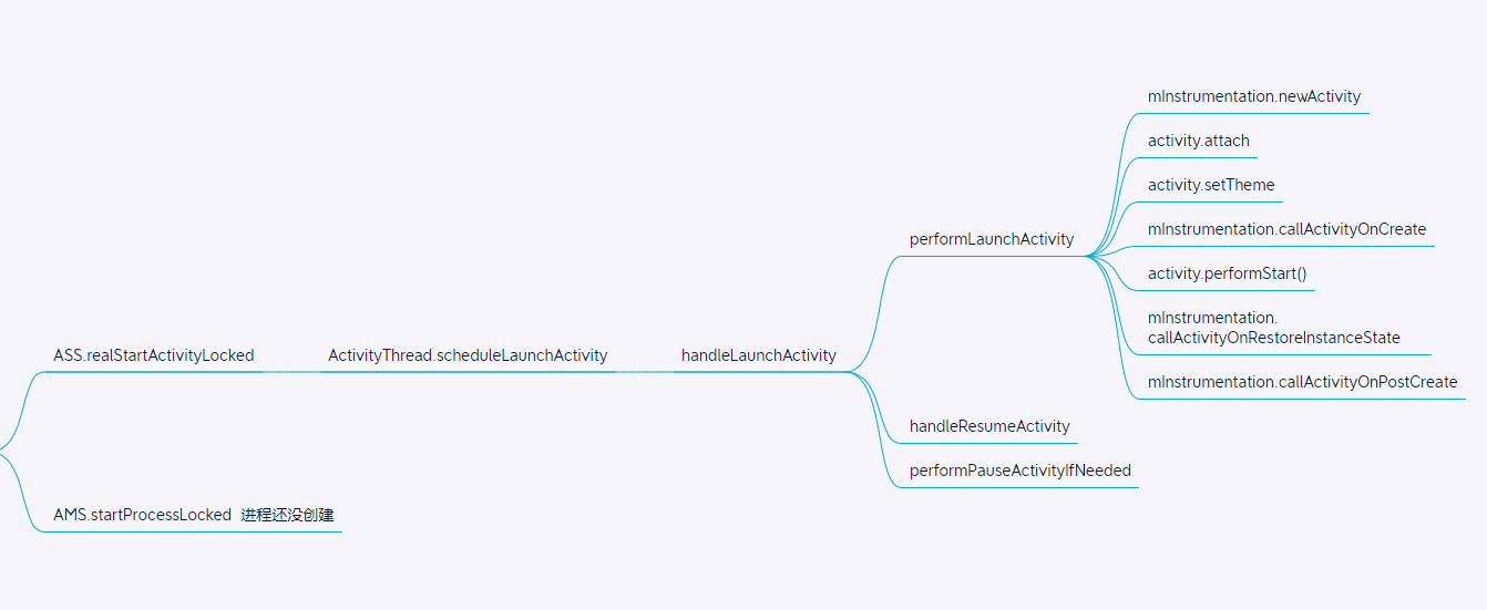 - AMS通过binder代理调用到ApplicationThread(ActivityThread的内部类)中的方法后,通过主线程(ActivityThread中的main方法)中开启的handler消息轮询来通知主线程调用相关方法。主线程的相关声明周期方法的具体实现会委托给Instrumentation类实现,在Instrumentation类中,会调用具体组件的相关生命周期方法。