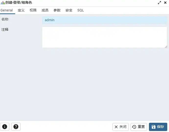 登录组/角色右键-创建一个超级用户:admin