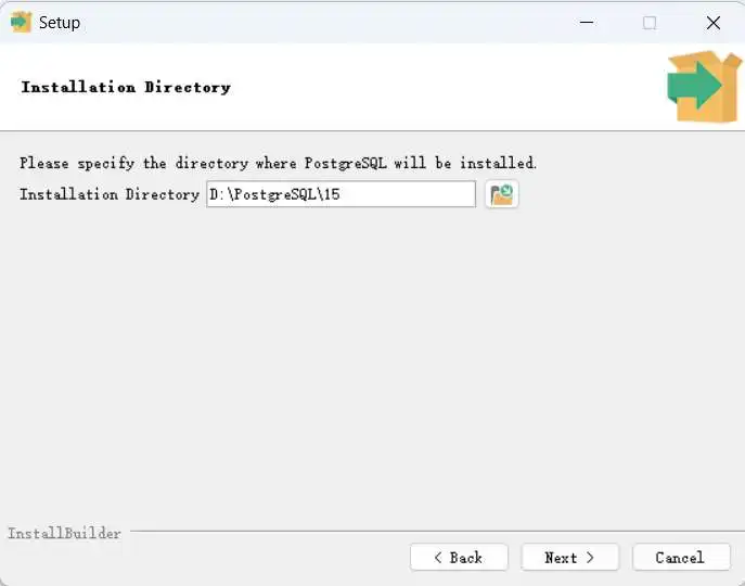 首先,是需要选择一个PostgreSQL的安装路径。建议安装在除C盘之外的其他路径,如下图所示。