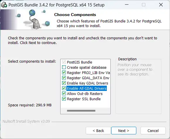 接下来,在安装PostGIS时,又需要选择一下安装的项目,大家如果没有别的特殊需求,按照下图所示的勾选方式来安装即可。