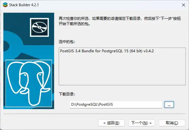 随后,下载目录建议放在我们前述PostgreSQL的安装路径中的PostGIS文件夹内,如下图所示。