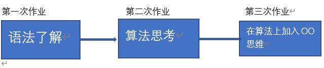 ①三次作业之间的知识迭代关系:三次作业的难度依次叠加,从简单到复杂,从纯粹的面向过程思维到OO编程思维的转换。