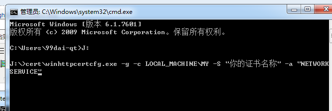 winhttpcertcfg.exe -g -c LOCAL_MACHINE\MY -s "你的证书名称" -a "NETWORKSERVICE"