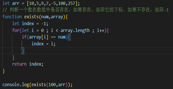 判断一个数在数组中是否存在,如果存在,返回它的下标,如果不存在,返回-1