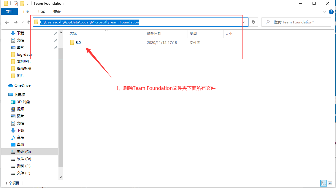 1、删除Team Foundation文件夹下面所有文件