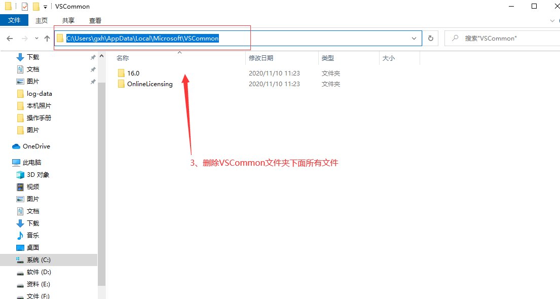 3、删除VSCommon文件夹下面所有文件
