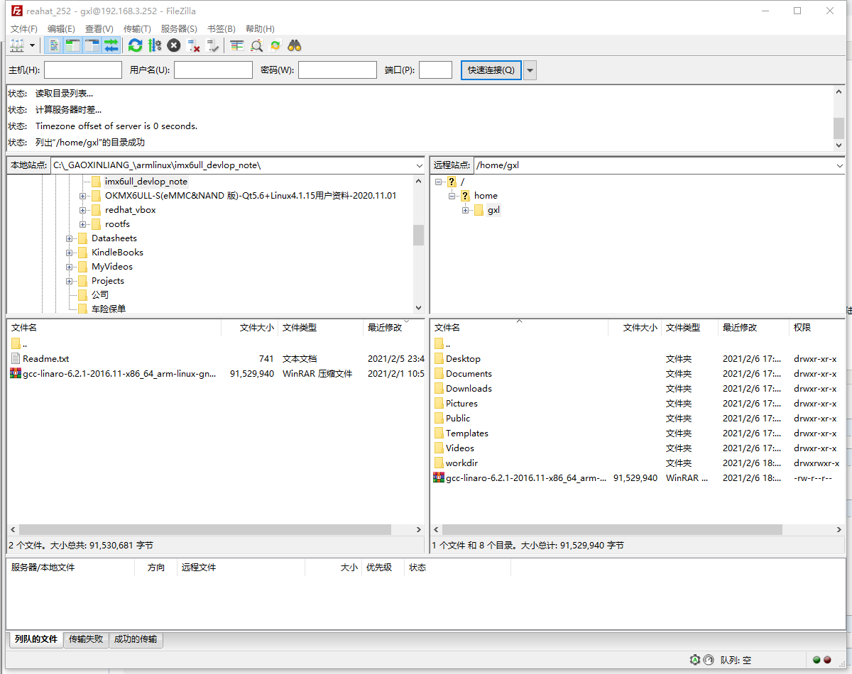 3、启用ftp服务,我这里安装完系统后即已安装ftp,只是ftp服务未启用,使用systemctl start vsftpd启用即可,而pc端客户端可使用FileZilla进行ftp登陆,如果登陆失败,可能是Linux中防火墙的原因,我这里直接sudo systemctl stop firewalld.service关闭防火墙后即可;
