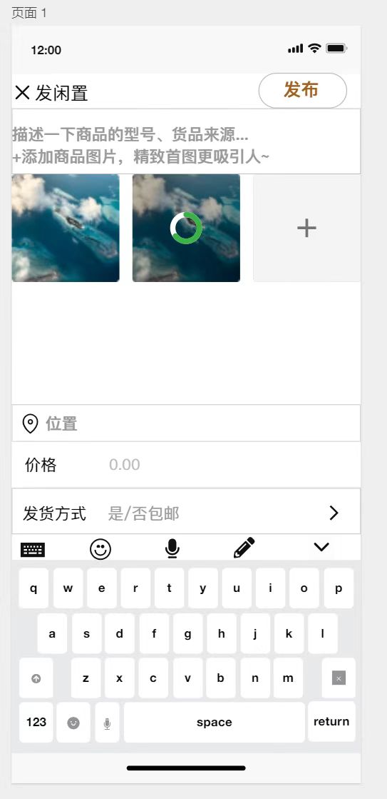 前置条件:用户已登录,可从“我的”界面点击“发布”或商品展示首页界面点击“发布”进入 。