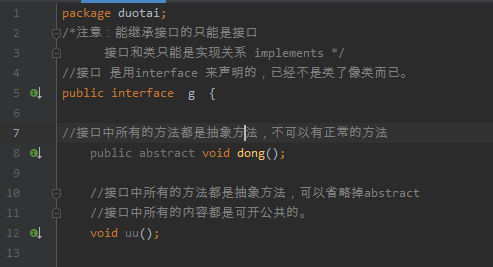 2.接口中所有的方法都是抽象方法 ,都是公开公共的。