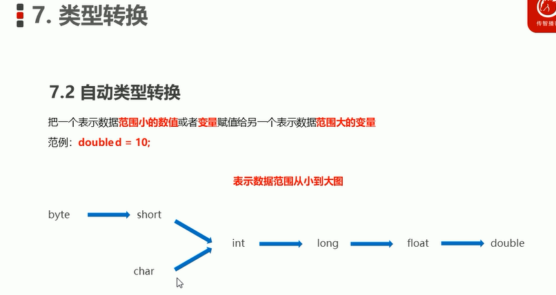 byte 根据箭头 可以向上转换。 byte 不可以直接转换为char。
