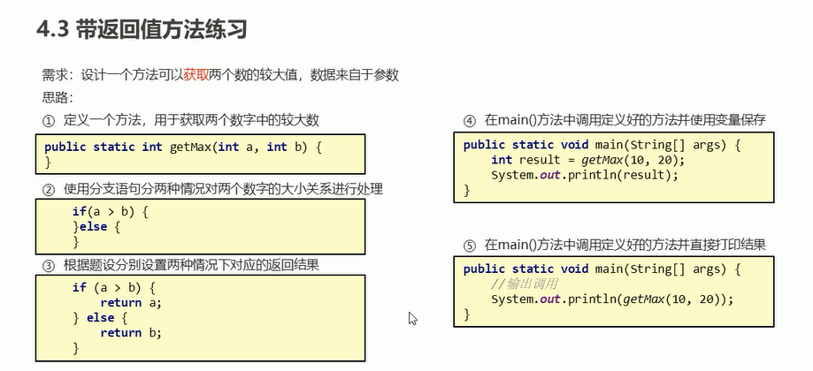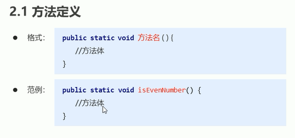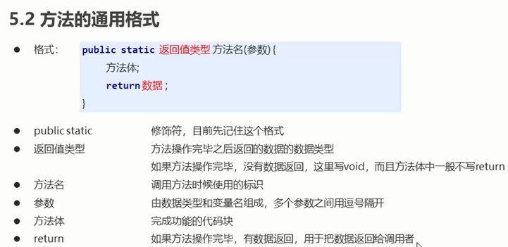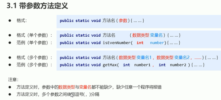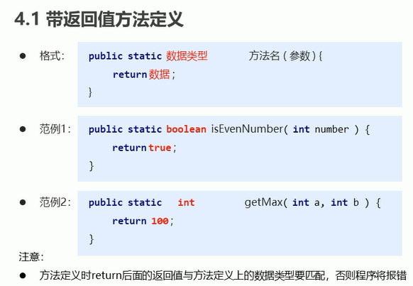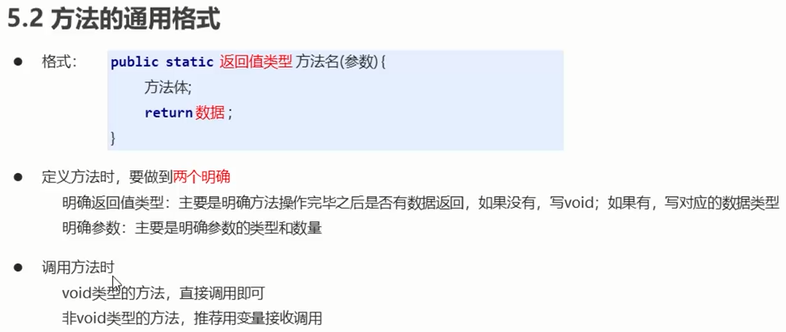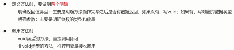 1.方法不能嵌套定义。(方法内不能在定义方法) 2.void 表示无返回值,可以省略return,也可以单独书写return,后面不能加数据,return为方法最末端。