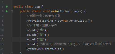 关键方法 ac.add("字符“”); ac.add(位置,“字符”)