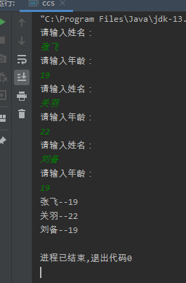 需求:键盘输入 3个用户 内容有 名字 年龄,输入完成收 打印出来。