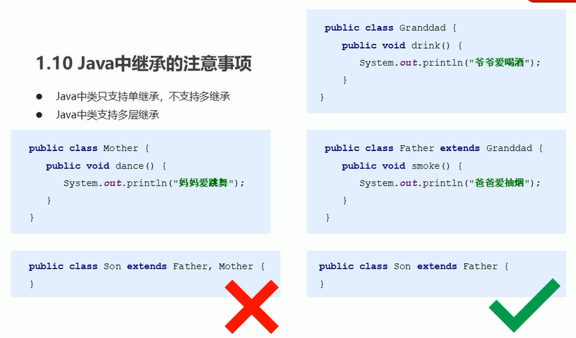 H》《继承》概述、优缺点、变量特点、super、继承构造特点、成员方法特点、方法重写、