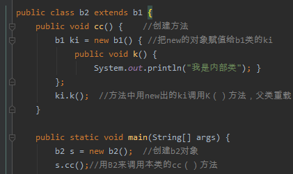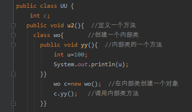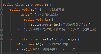 例:关键点 内部类在方法中 直接用 class 类名创建; 内部类中所在的方法中也可以创建对象。