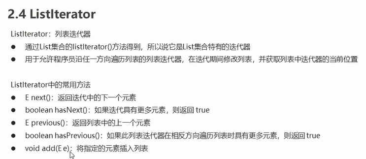 Collection 、List集合类 Iterator迭代器、 ListIterator列表迭代器