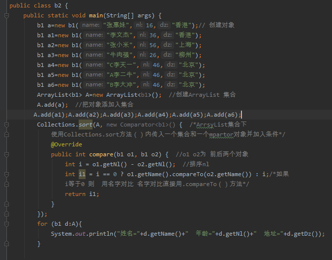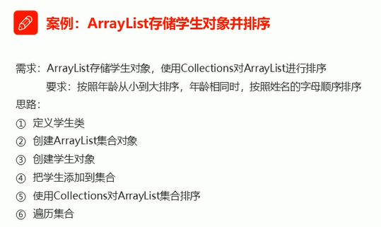 注意 ArrayList 需要排序需要使 Collections.sort()方法,直接类名+方法;()实参 传入 ArrayList集合 和 Comparator对象