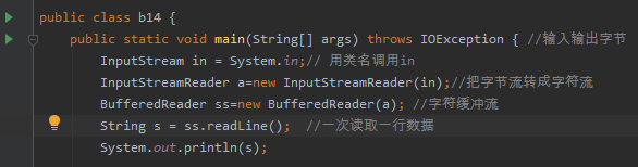 例三:一次读取一行数据。 必须有缓冲字符流