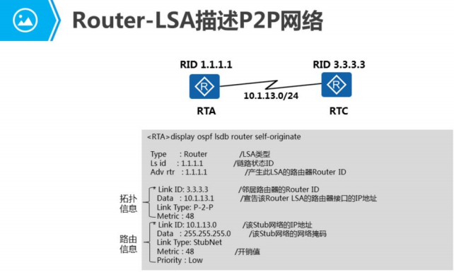 使用一类LSA(Router-LSA)描述点到点接口