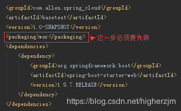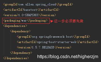 1 在pom.xml依赖配置中新增 <packaging>war</packaging>