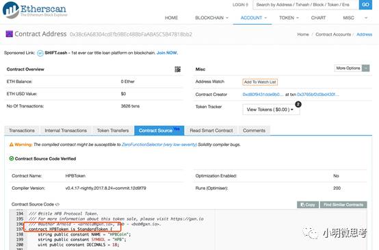 点击下图中的智能合约地址链接,进入智能合约详情页面。