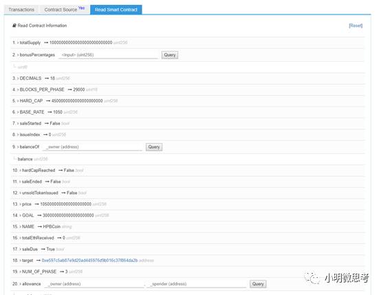 可以很清晰的看到智能合约的相关属性,输入输出项。