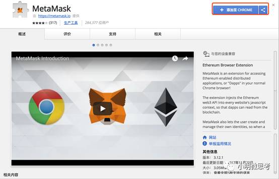 这里先需要提醒下,MetaMask目前必须在Chrome浏览器的在线应用商店进行在线下载和安装,因为网络原因你需要使用VPN才能下载安装。
